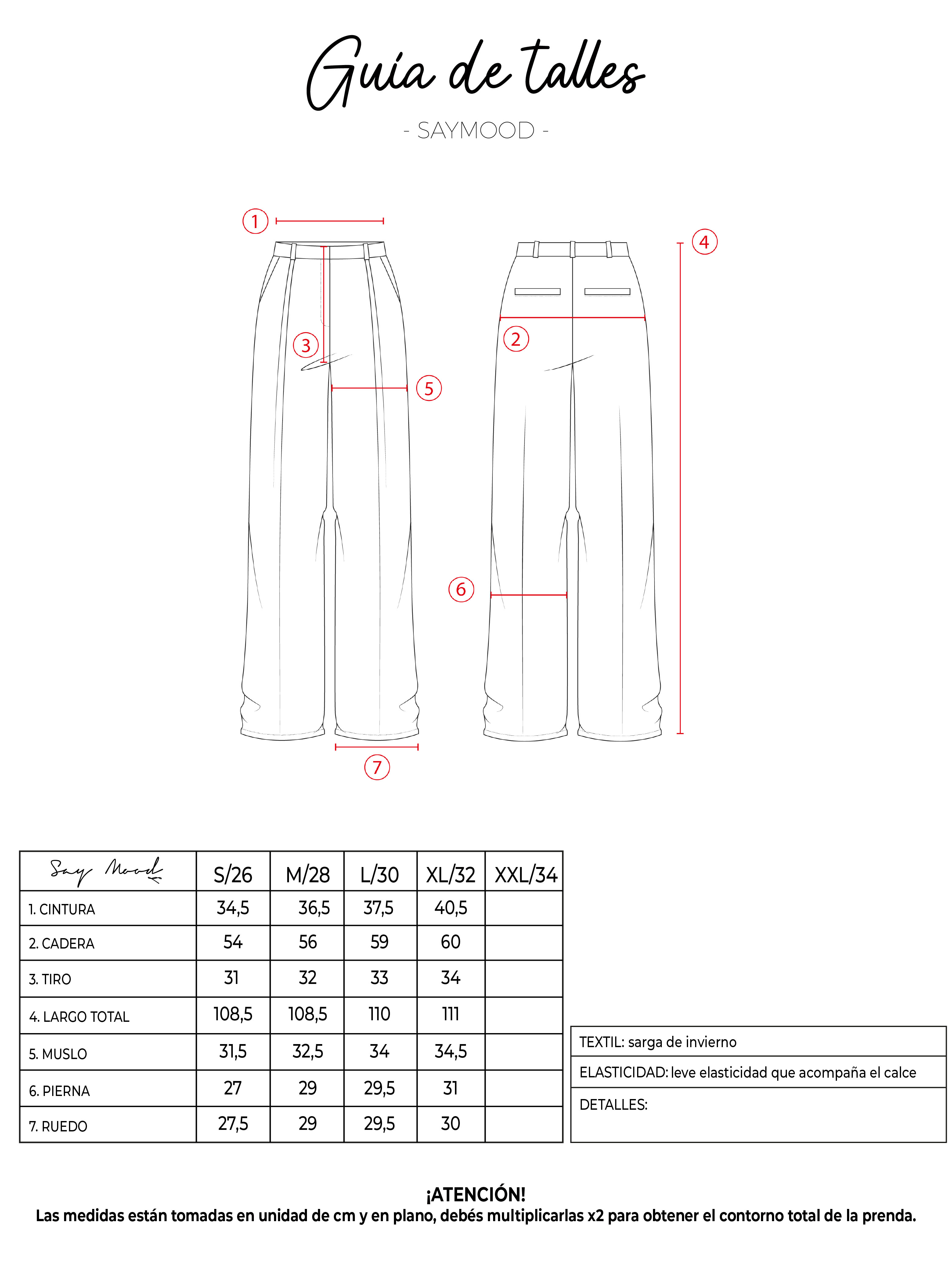 SAYTIPS: chequeá con atención nuestra tabla de talles para encontrar el que mejor vaya con vos. Podés tomar como referencia una prenda similar que tengas para mayor seguridad 😉