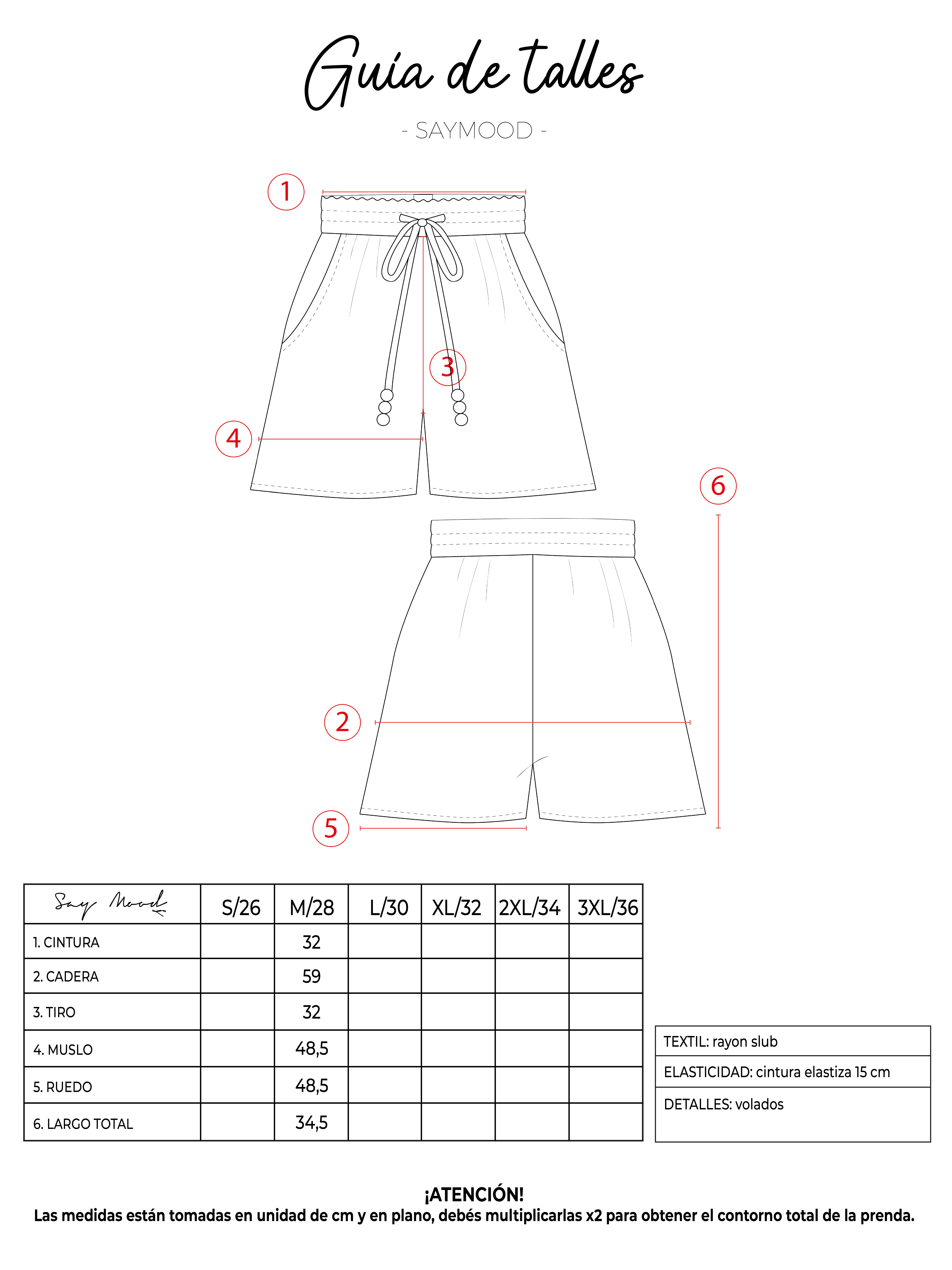 SAYTIPS: chequeá con atención nuestra tabla de talles para encontrar el que mejor vaya con vos. Podés tomar como referencia una prenda similar que tengas para mayor seguridad 😉