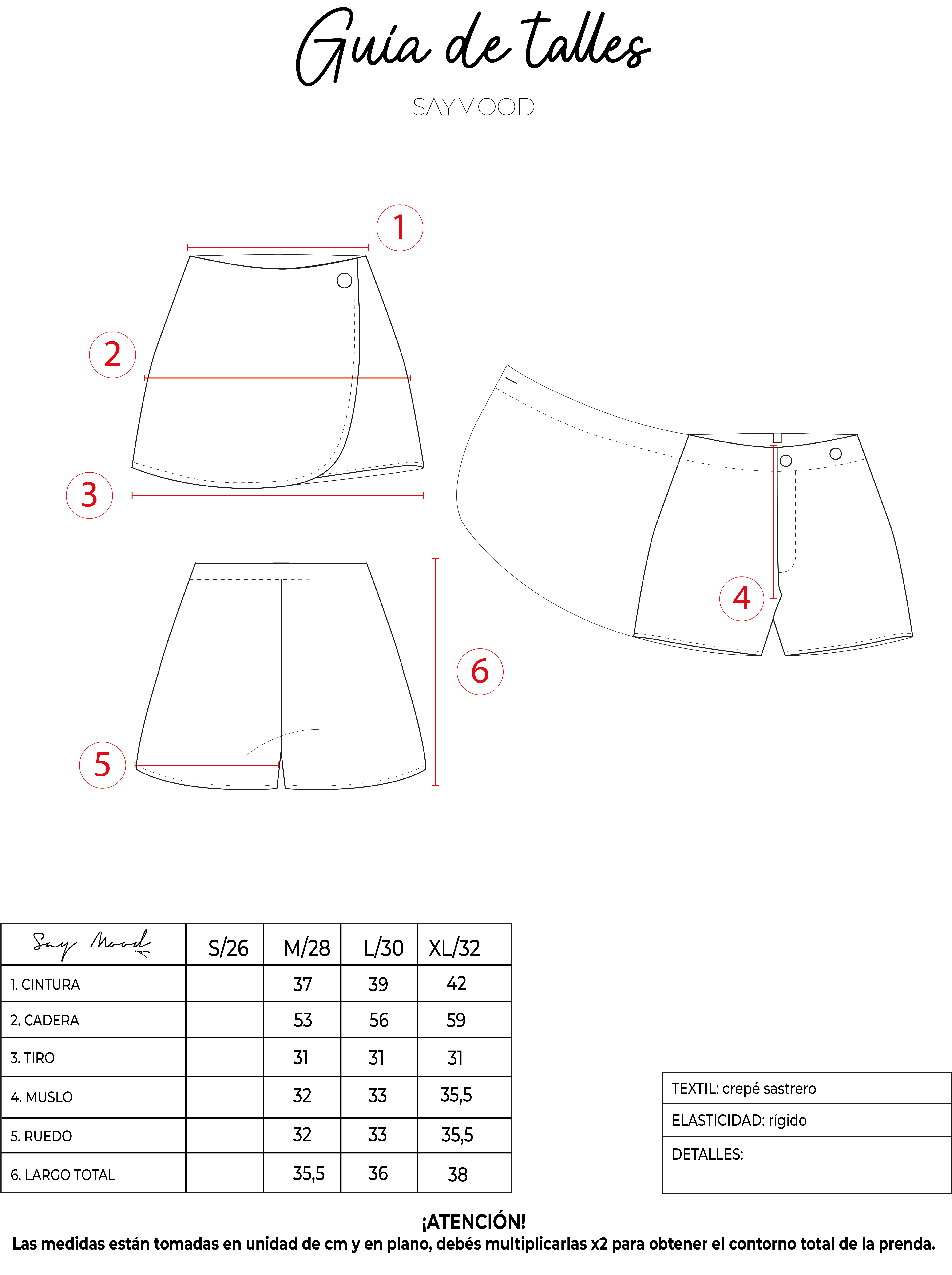 SAYTIPS: chequeá con atención nuestra tabla de talles para encontrar el que mejor vaya con vos. Podés tomar como referencia una prenda similar que tengas para mayor seguridad.