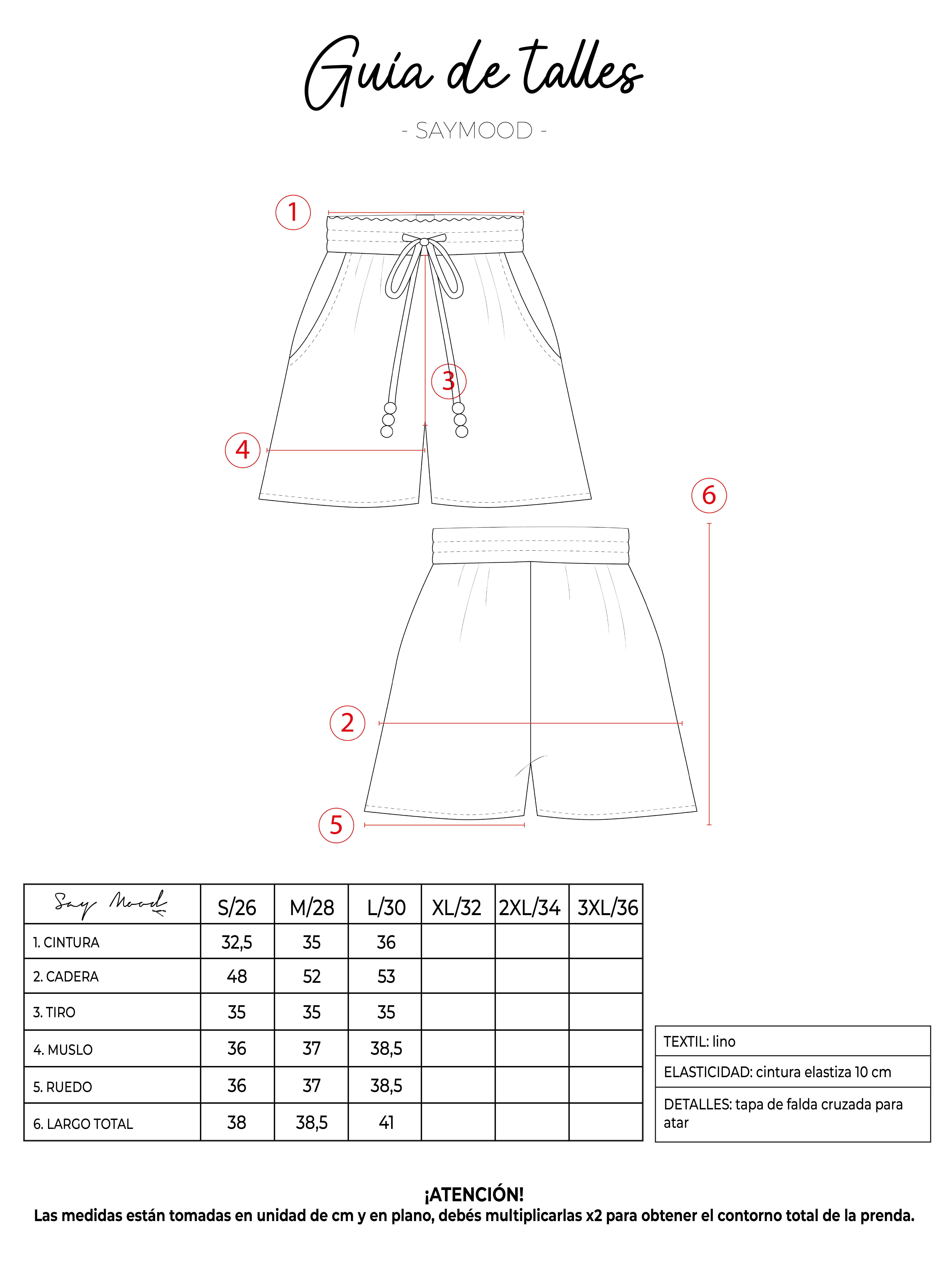 SAYTIPS: chequeá con atención nuestra tabla de talles para encontrar el que mejor vaya con vos. Podés tomar como referencia una prenda similar que tengas para mayor seguridad 😉